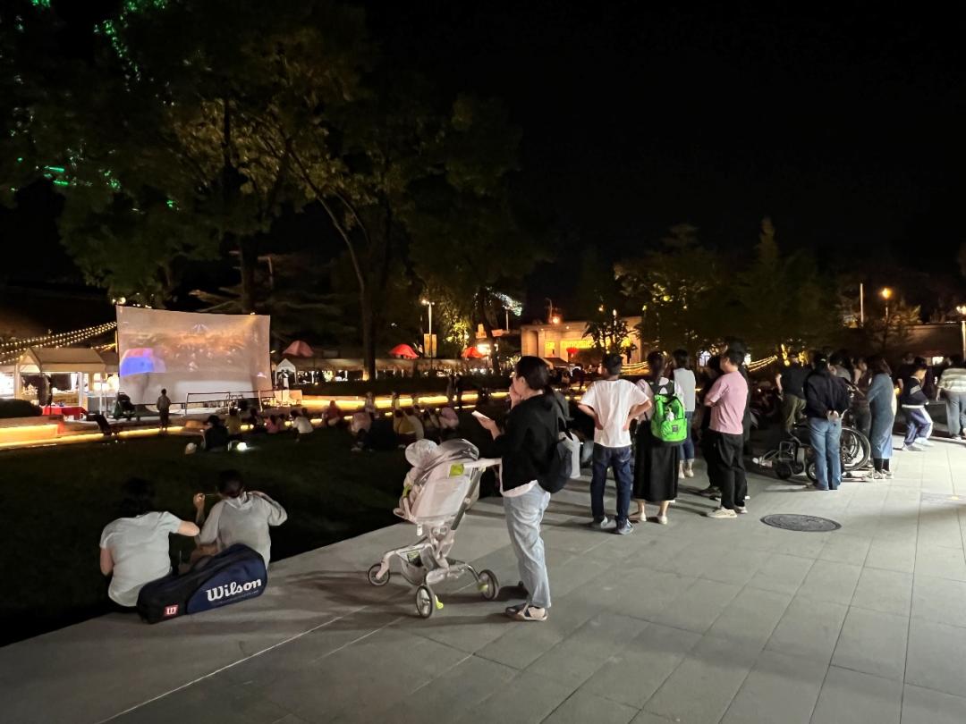 晚風(fēng)輕拂,皓月當(dāng)空。隨著夜幕降臨,在龍徽1910文化創(chuàng)意產(chǎn)業(yè)園露天公益電影放映現(xiàn)場,人頭攢動,熱鬧非凡。附近居民扶老攜幼,或坐或站,背頂星光,悠閑地圍在放映機周圍,一邊享受著習(xí)習(xí)秋風(fēng),一邊全神貫注地盯著銀屏布幕,共同欣賞著經(jīng)典大片帶來的震撼與歡樂。